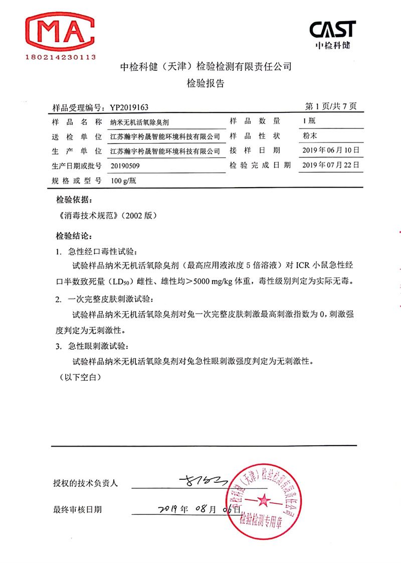急性经口毒性试验/一次完整皮肤刺激试验/急性眼刺激试验,结果为无毒无刺激性